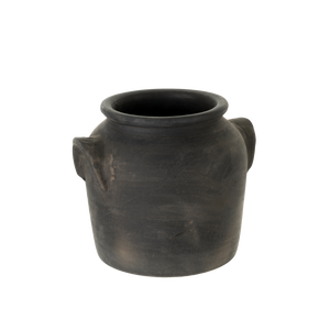 Materials & Composition: Each urn is skilfully hand-thrown in India, using traditional pottery techniques. Fired in wood-fuelled kilns, the terracotta undergoes a double-firing process, where sand and smoke transform the natural clay into its distinctive matte-black finish, enhancing its rich, organic texture.