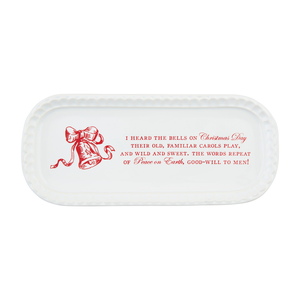 The Bells Toile Everything Plate is a versatile stoneware dish that can be used for a variety of purposes. With its textured rim, it adds a touch of elegance to any table setting. Measuring 4" x 9", it is the perfect size for serving appetizers, desserts, or even as a catch-all dish for keys and trinkets. Its durable construction makes it suitable for everyday use, and its classic design makes it a timeless addition to any kitchen. Whether you're hosting a dinner party or just need a stylish way to organize small items, the Bells Toile Everything Plate is the perfect choice.