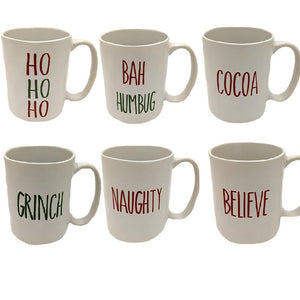 Pick which Mug you like Grinch, HoHoHo, Believe, Bah Humbug, Naughty or Cocoa.