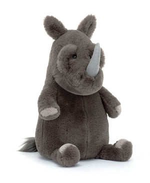 Roderick Rhinoceros is a sturdy guy and a fiercely loyal friend. This rhino is rocking a rumpled brow, petal ears and a big suedette horn. With scrumptious grey fur, a huggable tummy and a fuzzy tail with silky plume, he's stomping about in style! Tons of texture for curious hooves.