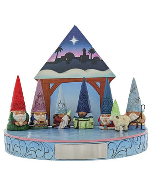 This delightful nativity set brings whimsy to your holiday décor with charming gnome-inspired characters. Discover Joseph, Mary cradling Baby Jesus, three gift-bearing Wise Men, a devoted Shepherd, and a woolly Sheep—all accompanied by a sturdy cardboard stable backdrop. Perfect for creating a cozy, enchanted Christmas scene that celebrates the season with a touch of magical charm.