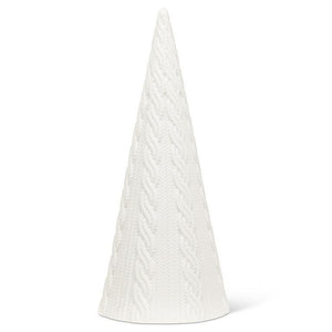 Bring some unique, cable-knit style to your home with this distinctive Large Cabled Cone Tree. This matte white-coloured porcelain 10 inch tree is accented with a traditional cable-knit design that makes an enchanting, unexpected complement to your table or mantle. Also available in other sizes and styles.
