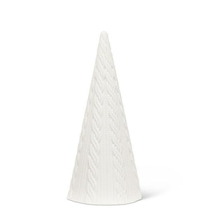 Bring some unique, cable-knit style to your home with this distinctive Medium Cabled Cone Tree. This matte white-coloured porcelain 8 inch tree is accented with a traditional cable-knit design that makes an enchanting, unexpected complement to your table or mantle. Also available in other sizes and styles.