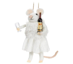 Winter Mouse W/Wine & Glass Ornament