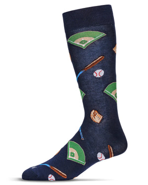 We've hit a home run with our Men's Baseball Bamboo Crew Socks! You won't strike out with this fun navy novelty footwear featuring baseball diamonds, baseballs, bats, and gloves. Made with a super soft bamboo blend, you'll love them for their comfort as well as their quirky style! Talk about a grand slam!