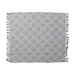 Wrap yourself in winter charm with this delightful jacquard throw blanket! Measuring a cozy 60" by 50", it features an enchanting snowflake pattern woven into recycled fabric for an eco-conscious touch. The soft beige and natural tones bring warmth to any room, while playful fringe trim adds just the right amount of personality. Perfect for snuggling up during chilly evenings or draping across your favorite chair for instant seasonal style.