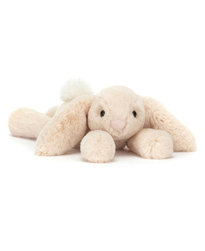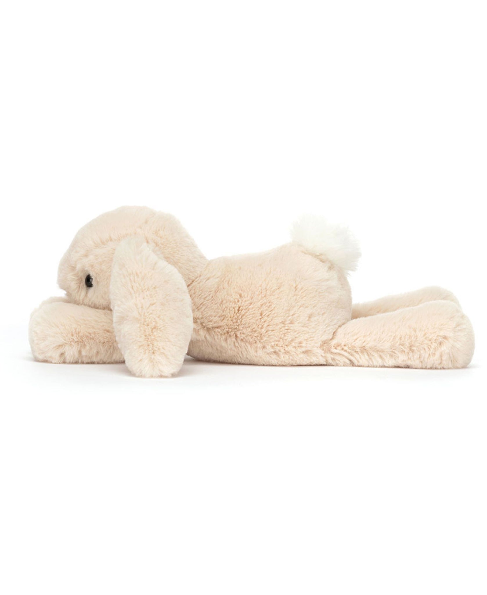 Smudge Rabbit is such a sleepy sweetie - always sprawling out, lazing on the bed or rug! Scrumptiously soft in oatmeal fur, this lop-eared lazer just captures the heart. An incredibly lopsy and loving companion, Smudge is a great gift for any bouncing baby. Bonnets and bobtails - we like it!