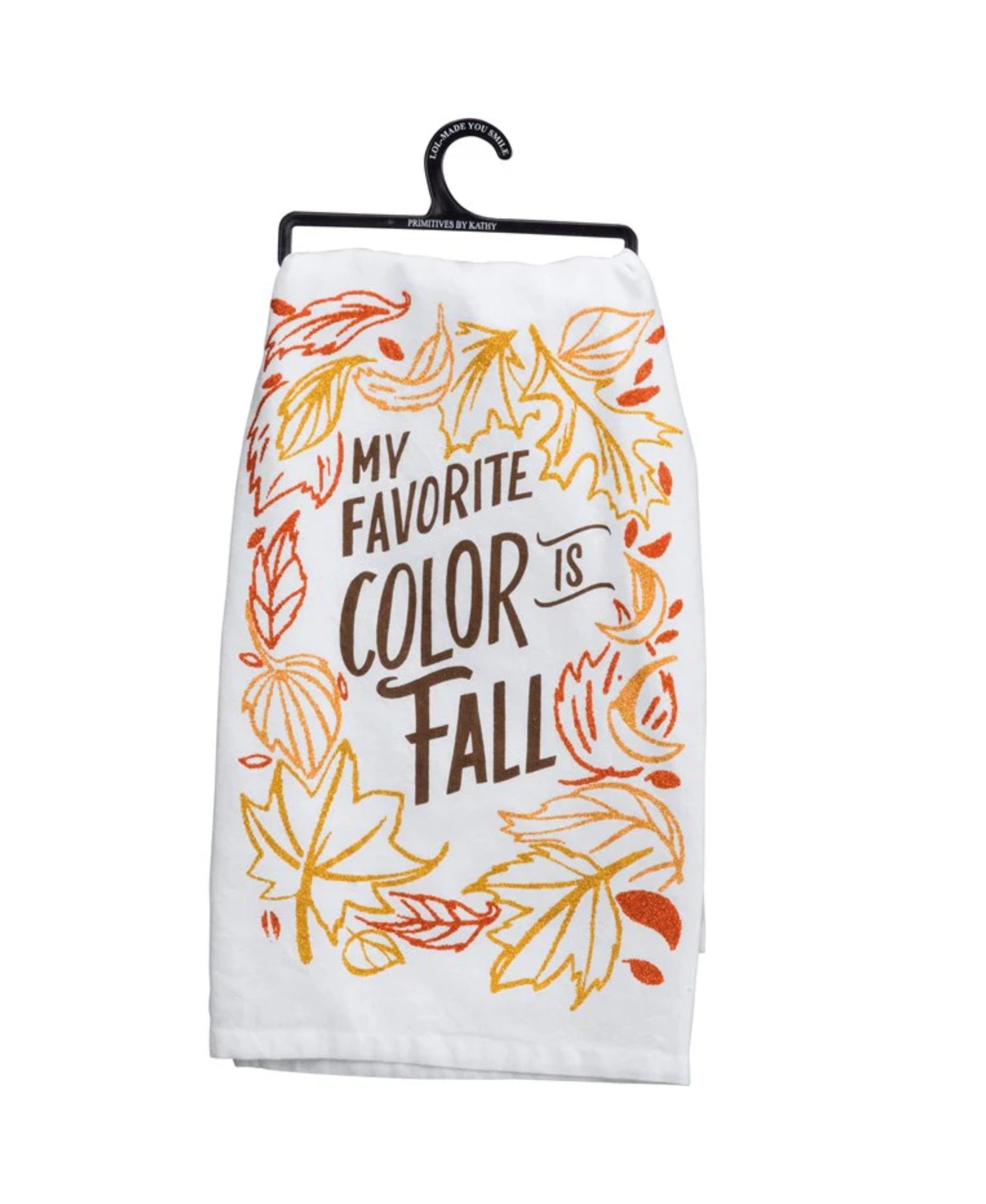 Wrap your kitchen in autumn vibes with this charming cotton dish towel that celebrates fall in the most delightful way. Adorned with playful leaf designs and shimmering glitter accents, it's the perfect way to show off your seasonal spirit while tackling everyday kitchen tasks. Best of all, it's machine-washable and the glitter stays put—no sparkly surprises in your laundry!